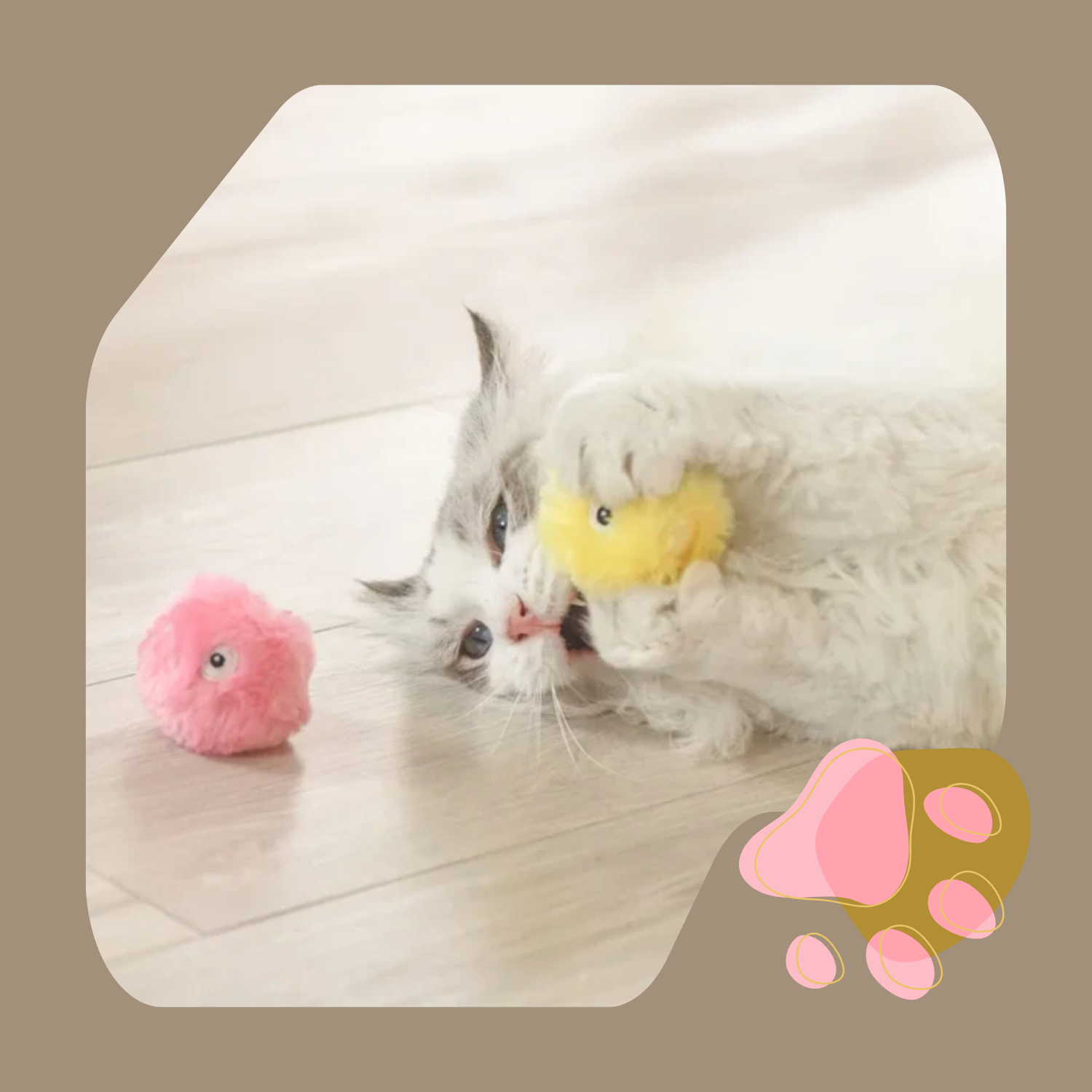 Brinquedo interativo em forma de bola de pelúcia com som real de animais, projetado para estimular o instinto natural de caça dos gatos.