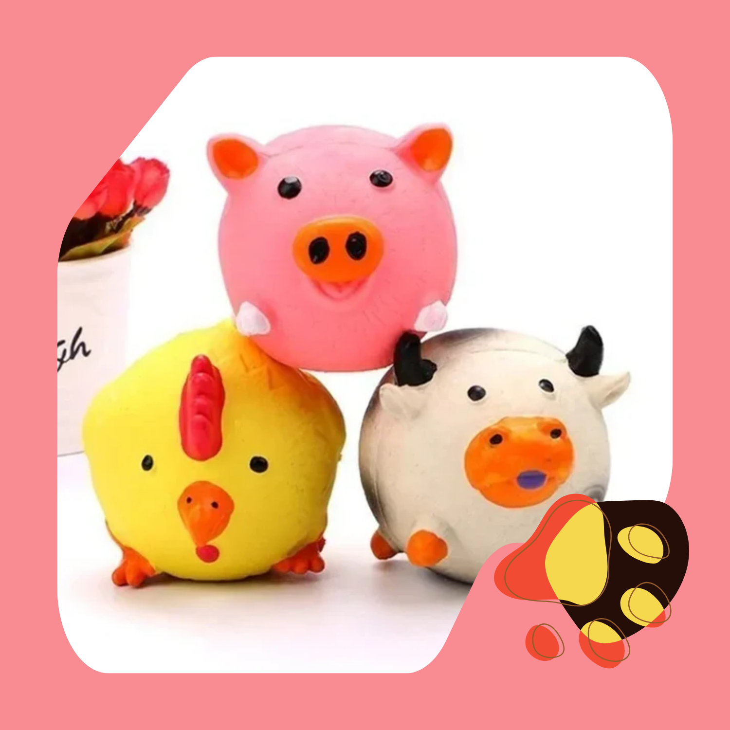 Feito de látex de alta qualidade, este brinquedo está disponível em três modelos super divertidos: porquinho, galinha e vaquinha. Ao ser pressionado ou mordido, ele emite um som engraçado que vai chamar a atenção do seu doguinho na hora! 🎵🦴