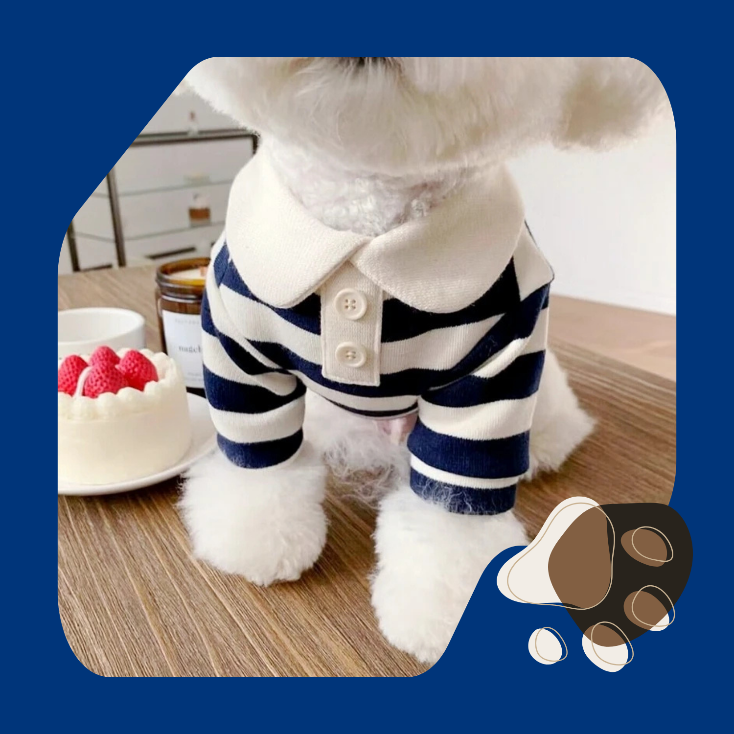 Design listrado e esportivo, ideal para Chihuahua, Bichon Frisé, Poodle e pets de pequeno a médio porte.