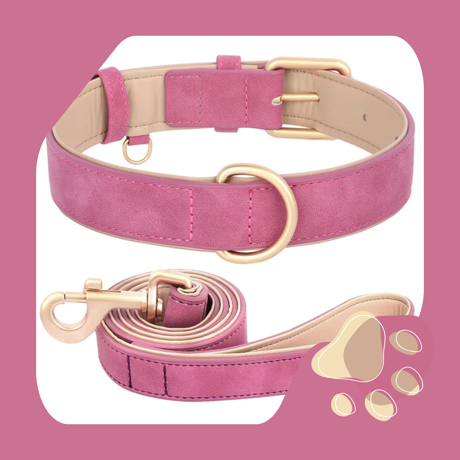 Feita em couro PU macio e resistente, esta coleira com guia oferece conforto e durabilidade para cães de diferentes portes. O design acolchoado e ajustável garante segurança e bem-estar durante os passeios.