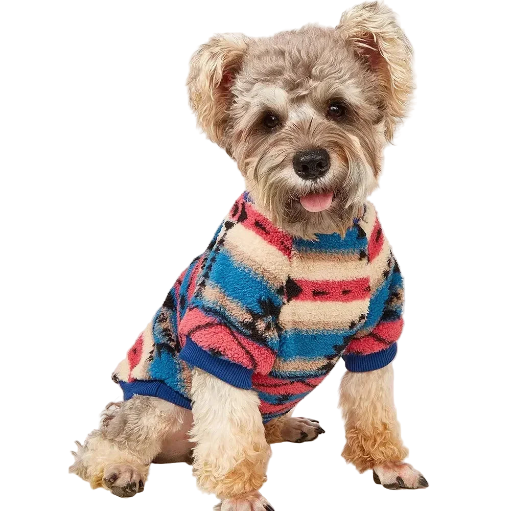 Deixe seu pet ainda mais estiloso e confortável com o Suéter Étnico Listrado!