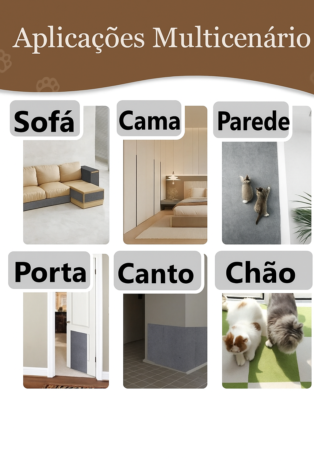 🐾 Super versátil: pode ser cortado em qualquer formato para adaptar-se a sofás, paredes, móveis ou arranhadores.